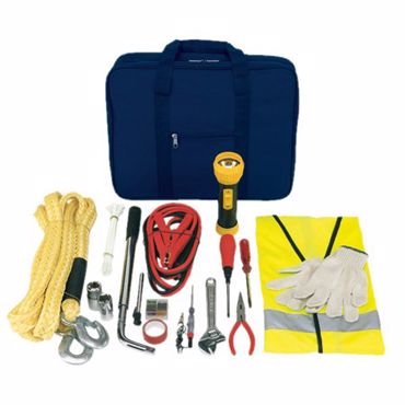 Malette à outils pour voiture composée de 2 gants, corde de remorquage, câble de démarrage, lampe torche, appareil de contrôle de pression des pneus, bande isolante, 2 tournevis, clef anglaise