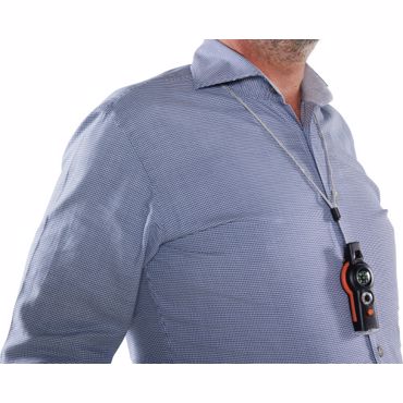 Kit de survie composé d'un sifflet, une boussole, un thermomètre, une torche, un miroir et une loupe, muni d'un système anti-étranglement.
