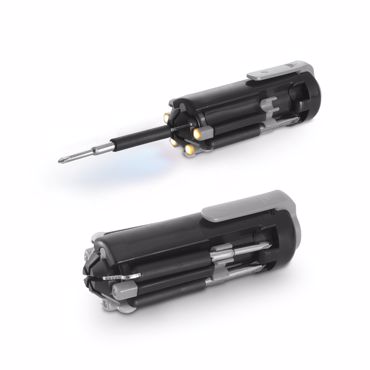 Kit d’outillage. ABS. Avec clip, 4 LEDs et 5 clés. 2 piles AAA incluses. 90 x 30 x 35 mm Sachet individuel, Boîte blanche