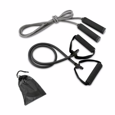 Kit fitness. Inclus elastique et corde à sauter. Livré avec housse en 190T. Housse: 210 x 270 mm