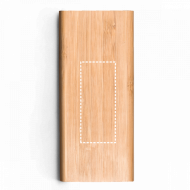 Batterie portable en bambou d'une capacité de 5 000 mAh. Cette batterie a une entrée / sortie 5V / 2A, 2 entrées micro-USB et 1 sortie USB. 120 x 51 x 15 mm