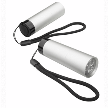 Lampe Led (9) en aluminium et sangle. Livrée avec 3 piles AAA.