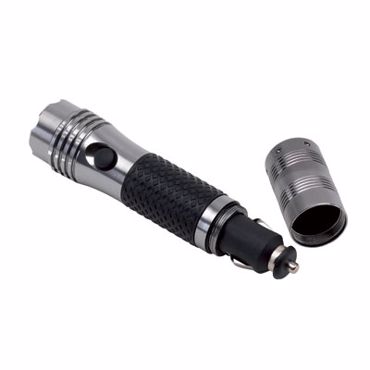 Lampe torche allume cigare. La lampe de poche LED ELECTRA grâce à sa poignée gomme tient bien en main, et illumine tout ce qu'elle ""touche"". Car vous pourrez recharger ELECTRA dans votre voiture par l´allume cigare. Lorsque vous dévissez l´extrémité de la poignée de la lampe vous trouverez la prise prévue à cet effet. La façade acier fait ce ELECTRA un accompagnateur robuste, qui vous montre toujours le chemin.