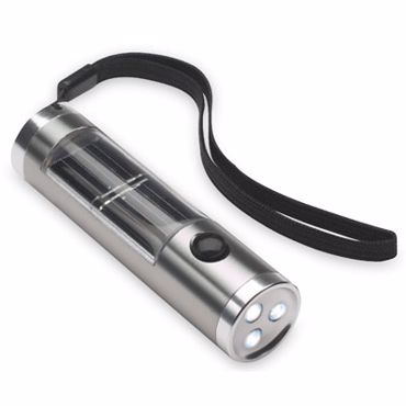 Lampe torche solaire gravée. Lampe de poche LED clignotante, CE, Couleur diode blanche, piles incluses,