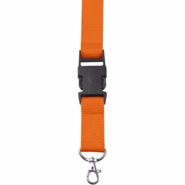 Lanyard en polyester 300D avec système anti-étranglement.