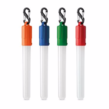 Lanterne en forme tubulaire en LED avec mousqueton, et mécanisme on/off. 4 piles LR41 incluses. 136 x 18 mm