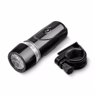 Lampe à vélo en plastique à 5 LED et une manche plastique. Piles AAA (4x) ne sont pas fournies. 100 x 65 x 35 mm