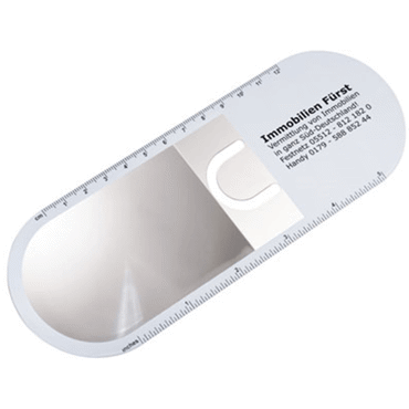 Tout en un ! Règle/ loupe avec double graduation inch et cm et clip pour l'utiliser comme marque-page. Livrée sous polybag . Logo imprimé sur l'espace libre sous la lentille.