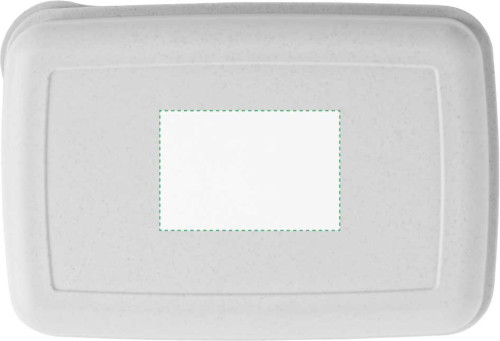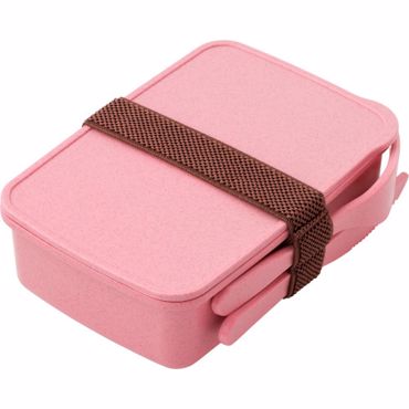 Lunch box en PP et paille de blé comprenant une fourchette et un couteau avec fermeture par élastique.