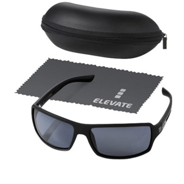 Lunettes de soleil Atna.Lunettes de soleil avec verres polarisés et protection UV 400, catégorie 3. Fournies dans un étui revêtement gomme avec chiffonnette. Conditionnées sous écrin Elevate. Design exclusif.Polycarbonate. Impression : Lunettes, verres à droite, On arm between hole and right edge, max color : 1