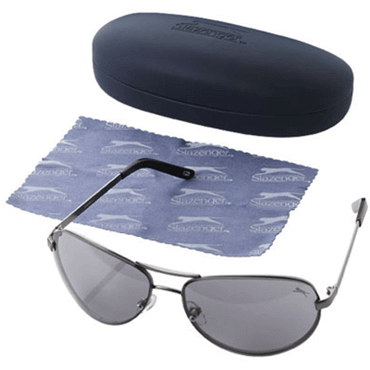 Lunettes de soleil Blackburn.Lunettes au design exclusif, conditionnées dans un écrin rigide avec chiffon. Protection UV 400, catégorie 3. Sous coffret Slazenger.Cupronickel et plastique. Impression : Lunettes, verres à droite, Centré sur le bras, max color : 1