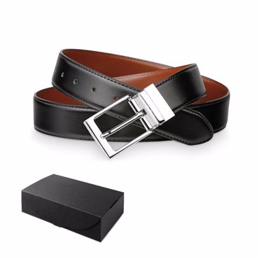 Ceinture en cuir pour hommes avec boucle en métal réversible et livrée dans une boîte-cadeau. Coffret cadeau, Housse en non-tissé