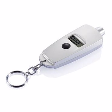 Manomètre digital personnalisé. Mini manomètre digital. Manomètre pour pneus avec étalonnage automatique, choix de l'unité de mesure et écran à cristaux liquides. Facile à emporter grâce à son porte-clés