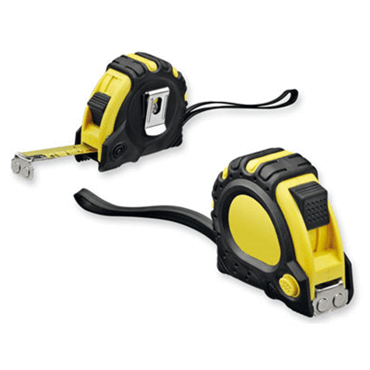 Mètre ruban avec arrêtage, en plastique et métal, muni du clip pour la ceinture et petit crochet métallique, 5 m. 8x7,5x4 cm
