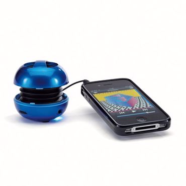 Mini haut parleur mobile 1 x 2,5 W compatible avec toutes les tablettes PC, Smartphone, iPod, iPhone, lecteurs MP3, connecteur jack 3.5 mm, amplification des basses par expansion de la zone de résonance, LED de fonctionnement, durée d?utilisation de 4 à 8 heures, batterie lithium 400mA, durée de charge 2.5 heures