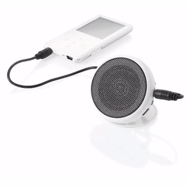 Mini haut-parleur publicitaire. Ce mini haut-parleur peut être trés facilement connecté à votre lecteur MP3/MP4, smartphone, et ordinateur. Prise jack 3.5 mm. En dépliant le support vous le ferez tenir sur n'importe quelle surface plane. Plastique.