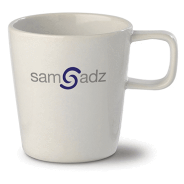 Mug en céramique de qualité. Idéal pour machines à café. Evite l'utilisation de gobelet en plastique. Forme conique avec anse carrée. Empilable.