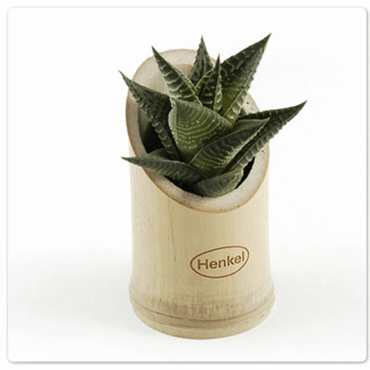 Présentation : L’haworthia est une plante grasse très résistante, pratique et écolo. Elle nécessite très peu d’eau et ravira donc vos collaborateurs les plus attentifs à l'environnement. Composition : 1 haworthia dans son pot en bambou. Longueur : 55 mm. Largeur : 55 mm. Hauteur : 90 mm. Poids : Environ 110gr. Personnalisation : Marquage laser sur le bambou. Quantite minimum : 250ex. Prix indiqué hors frais techniques et frais de transport