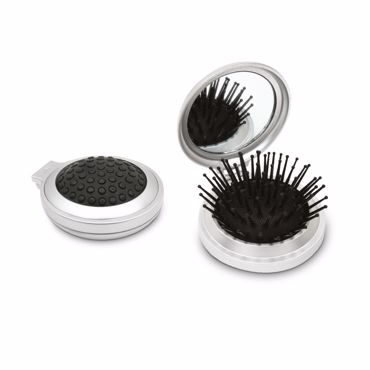 Miroir de maquillage. Avec brosse pliable. ø66 x 32 mm Sachet individuel