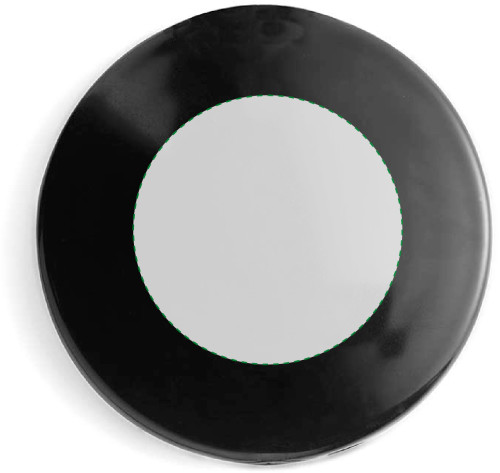 Miroir de poche normal et grossissant en plastique translucide et opaque en couleur argenté.