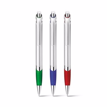 Stylo à bille en plastique avec grip en gomme. Encre bleue. ø13 x 140 mm