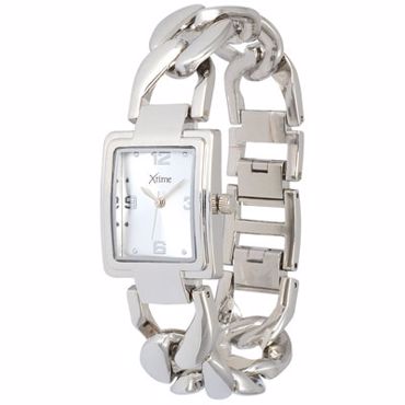 brillant. Montre analogique rectangulaire, verre minéral, bracelet chaîne à gros maillons