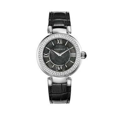 Montre Femme - VERSACE Boitier Acier - Cadran noir Bracelet Cuir Noir - Mouvement Quartz Verre Minéral - Etanche 5 ATM Garantie 2 ans Livré sous écrin N° de série individuel au dos du boîtier