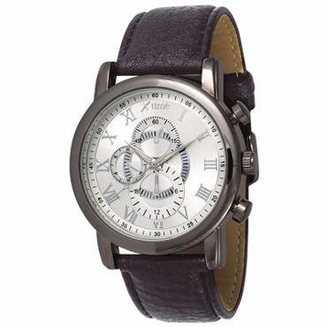 Montre homme GUN. Montre analogique homme, fond blanc argenté ,chiffres romains,3 cadrans factices,boitier métal gun,verre minéral,bracelet noir.