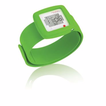 Montre pulsomètre avec fonction heure, alarme, chronomètre, mode capteur de pouls pendant l'exercice. Peut être porté autour du bras grâce à sa bande en silicone flexible.