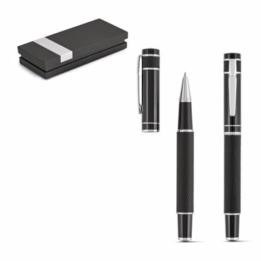 Stylo roller. Métal et simili cuir. Livré dans coffret cadeau rembourré. Dimension : ø13 x 141 mm | Coffret: 180 x 78 x 35 mm
