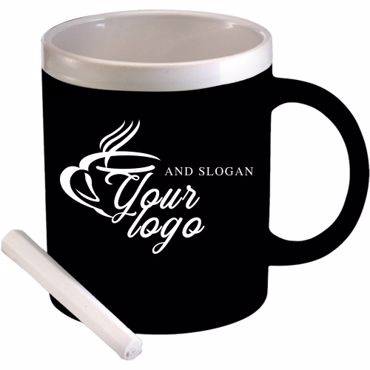 Mug en céramique d'une contenance de 0,30 l avec surface ardoisée, livré avec craie.