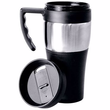 Mug isotherme bi-colore. Gobelet avec couvercle en acier inoxydable 0,4 l argenté/noir