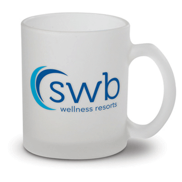 Nous personnalisons cette tasse en verre avec votre logo en couleur. L'aspect grivré du verre a pour effet de faire ressortir les logos.