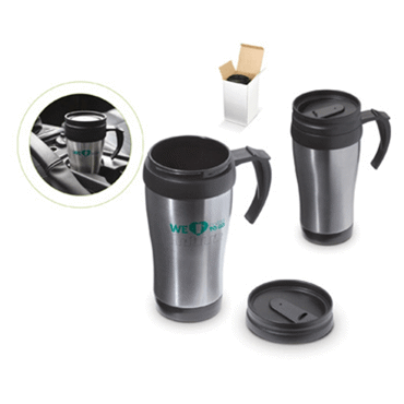 Mug thermos métallique pour voiture, adapté pour boissons chaudes. Tenez le mug droit car il n'est pas étanche à 100%. Livré dans une boîte cadeau.