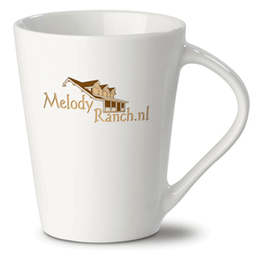 Mug blanc en porcelaine de haute qualité. La version originale du Nice. Made in Europe. Modèle conique avec grande surface de marquage.