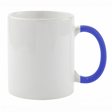 Mug blanc en céramique avec anse de couleur. Contenance 350 ml.