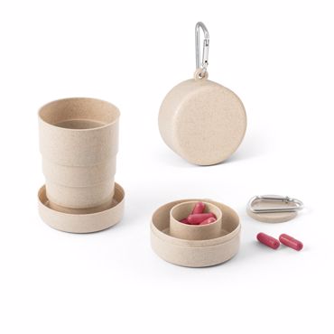 Verre de voyage rétractable en fibre de bambou (50%) et PP (50%) avec capacité jusqu'à 210 ml. Contient un pillulier et un mousqueton. ø65 x 33 mm The additional information presented is indicative and may vary