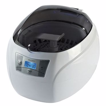 Nettoyeur à ultrasons 550 ml, écran LCD, 5 durées: 1 minute 30, 3 minutes, 4 minutes 30, 6 minutes, 7 minutes 30, arrêt automatique, retro-éclairage bleu, le nettoyeur génère une multitude de micro bulles qui nettoieront même dans les endroits difficiles à atteindre les bijoux, montres, dentiers, lunettes, tête de rasoirs électriques, CD/VCD/DVD,... cuves: acier inoxydable, livré avec support pour montre et support pour CD et panier.