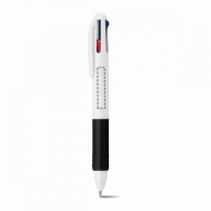 Stylo à bille avec antidérapant 4 en 1, écrit en bleu, rouge, vert et noir.