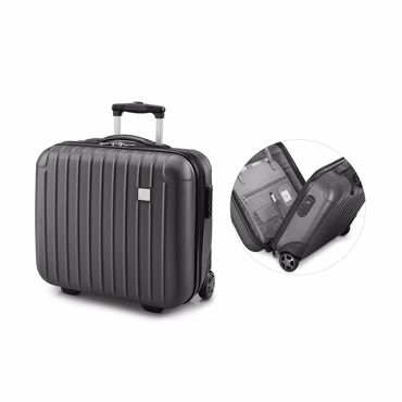 Trolley pour ordinateur. ABS. Compartiment inté,rieur pour ordinateur jusqu'à 15'6''. Inté,rieur doublé,. Poigné,e extensible en aluminium, et bouton poussoir. Fermeture avec code de sé,curité,. Plaque mé,tallique amovible pour la personnalisation. Capacité, jusqu'à 26 L. Poids: 2.95 kg. Plaque gravure laser livré,e en dehors du trolley. 420 x 340 x 195 mm | Plaque mé,tallique: 50 x 30 mm