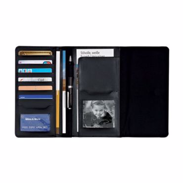 Organiseur de voyage : équipé d'un fermoir magnétique couleur argent, de nombreux rangements et d'un porte-stylo. Capacité: 2 poches et 1 rabat, 7 emplacements pour cartes de crédit, 2 emplacements avec fenêtre transparente.