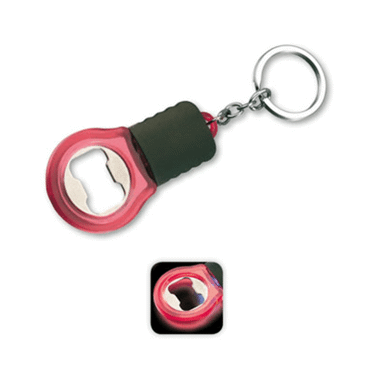 Ouvre-bouteille/porte-clés avec LED et avec anneau transparent rouge matériau: inox/ABS pile: 3 piles LR41 emballage: emballage individuel