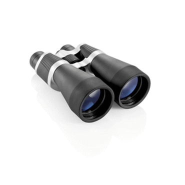 10x60, en caoutchouc noir et plastique argenté, lentilles bleues, pochette en nylon et chamoisine de nettoyage incluses.