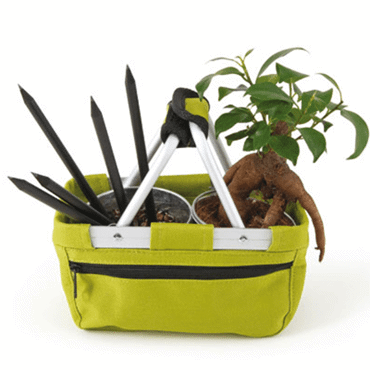 Présentation : Le Ficus ginseng a une allure tout a fait mystique, chaque exemplaire de cette plante étant unique! Présenté dans un élégant mini-panier avec un pot à crayon il aura toute sa place sur votre bureau. Composition : Panier tissu vert avec poignée alu comprenant 1 ficus ginseng dans pot zinc et 5 crayons bois prestige (teintés noir dans la masse - fabrication française) dans pot zinc. Longueur : 18 cm Largeur : 10 cm Hauteur : panier + plante : 20 cm Poids : 400 grammes Options : Divers marquages possibles : sérigraphie sur face avant sac, marquage 1 coul blanc sur crayons, leaflet personnalisé. Quantite minimum : 100