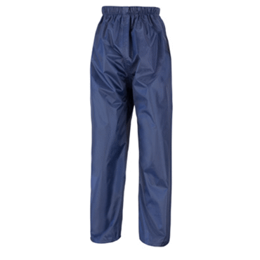 100% polyester avec enduit PVC Taille élastiquée Fentes à la taille pour accéder aux poches intérieures Coutures soudées (2.000 mm) Système de fermeture ajustable aux chevilles Convient à l'impression directe et transfert numérique.