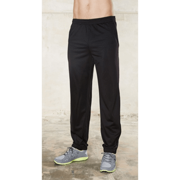 100% polyester tricot. 2 poches côté zippées. Ceinture élastiquée avec cordon de serrage. Bas de jambes élastiqués avec fente zippée.