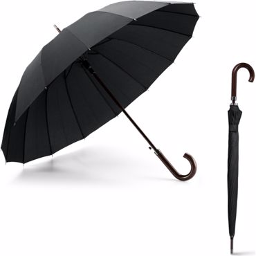 Parapluie 16 baleines. Pongee 190T. Manche et poignée en bois. Automatique. ø1110 mm | 945 mm Sachet individuel