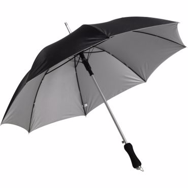 Grand parapluie golf en polyester 190T avec un enduit intérieur argenté. Il est personnalisé avec votre logo à l'extérieur.