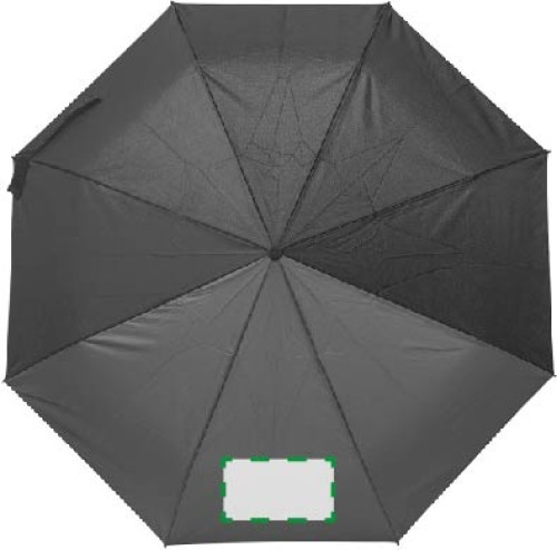 Parapluie pliable en polyester pongée 190T avec ouverture et fermeture automatiques, mât et baleines en métal, manche en plastique toucher gomme.