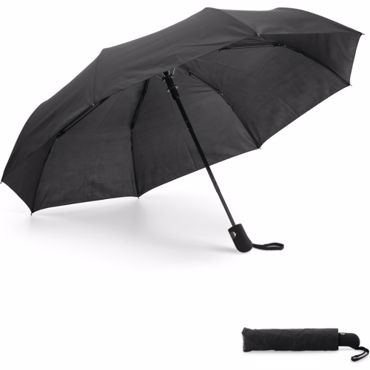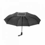 Parapluie publicitaire. Pongee 190T. Poignée avec finition caoutchoutée. Coupe-vent. Pliable en 3. Automatique. Livré dans housse. ø970 mm | 310 mm | Housse: ø50 x 250 mm
